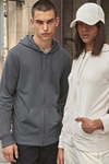 Unisex | French Terry fabric | Long sleeves | Simple design | Pre-washed, combed ring-spun cotton, organic or converted to organic | Recycled polyester | Side seams | No tag | Single jersey crescent yoke | High-quality reinforcing tape with a herringbone weave Covered metal lock | Single jersey lining in the hood | Fashionable drawstring | Unbrushed fabric | Durable fabric | Soft to the touch | Smooth, soft surface | Soft, satin label in the side seam